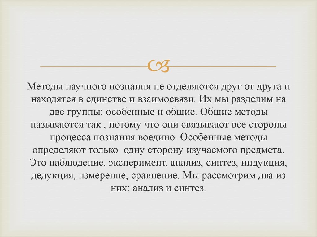 процесса познания воедино. Особенные методы