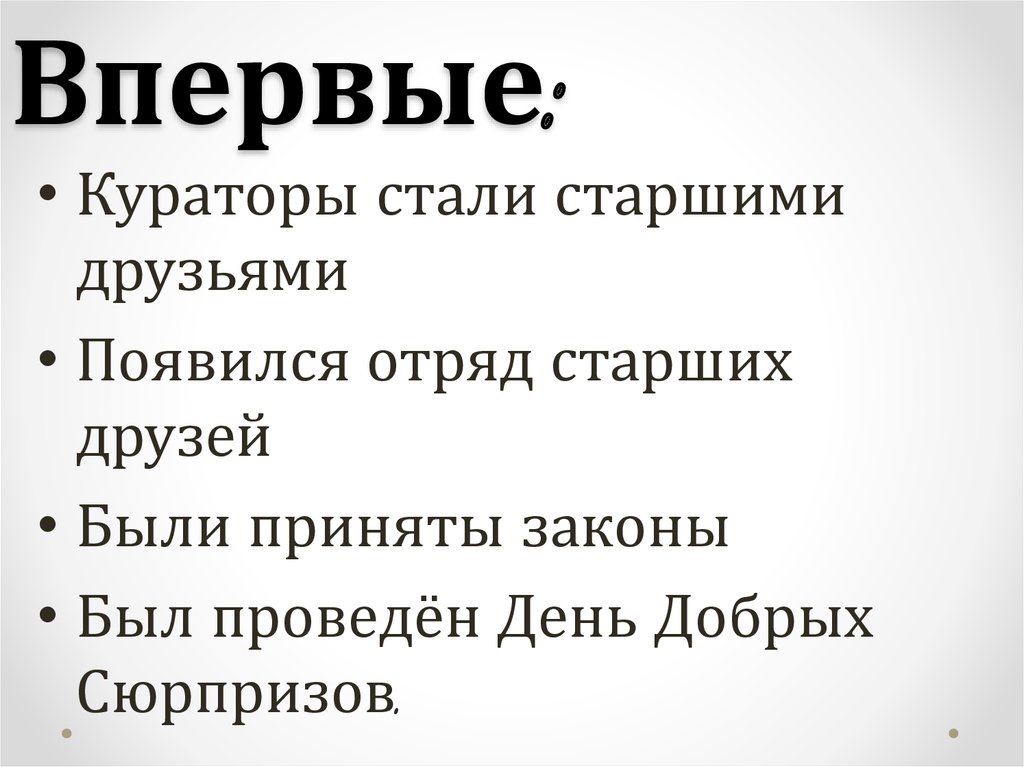 Впервые:• Кураторы стали старшими