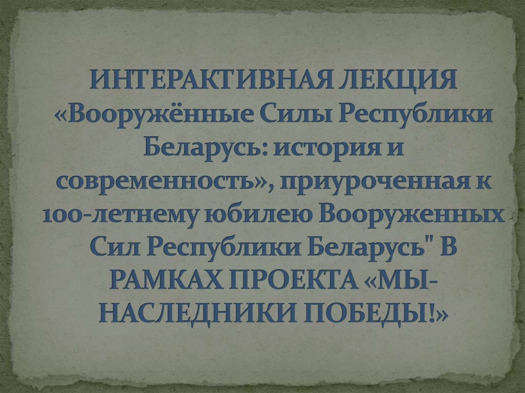 1. ИНТЕРАКТИВНАЯ ЛЕКЦИЯ «Вооружённые Силы Республики Беларусь: история и современность», приуроченная к 100-летнему юбилею