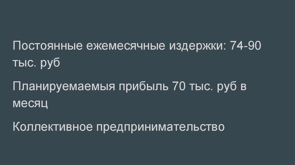 Постоянные ежемесячные издержки: 74-90тыс. руб