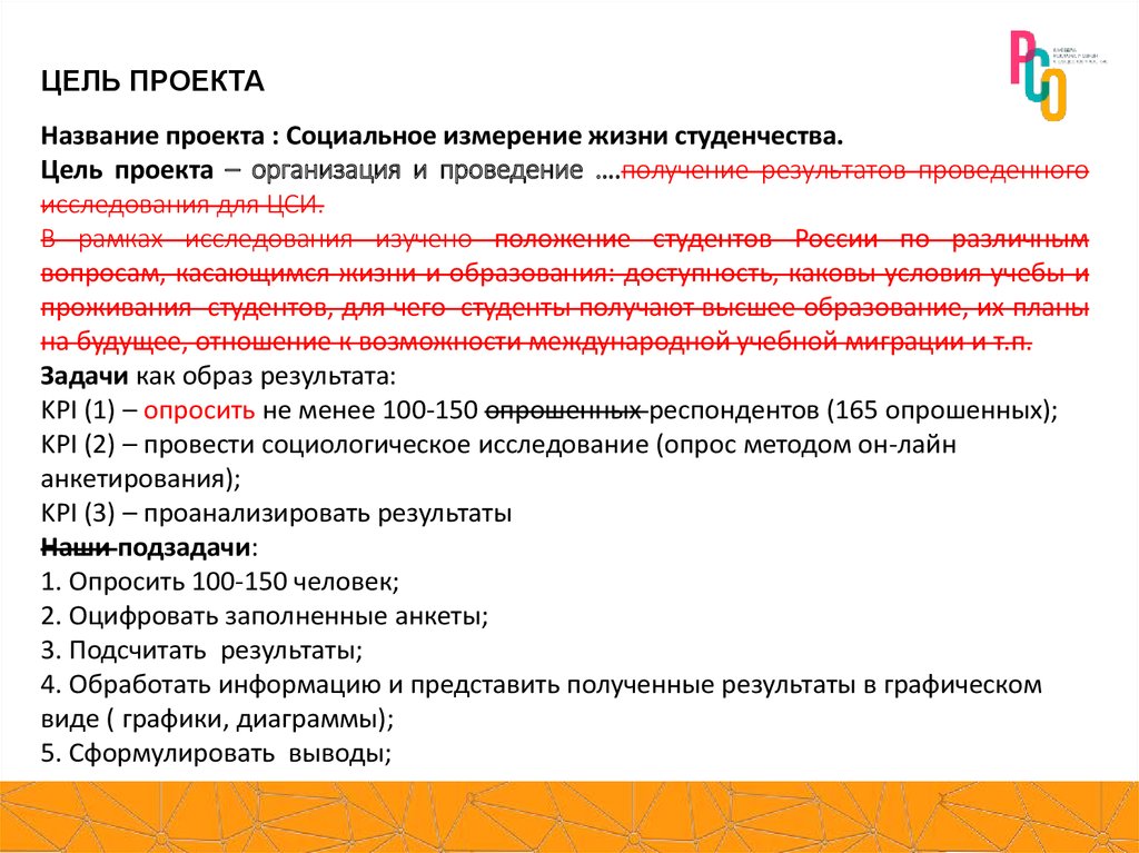 Цель проекта – организация и проведение ….получение результатов проведенного