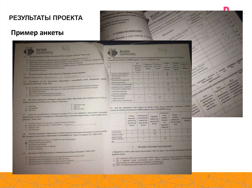 РЕЗУЛЬТАТЫ ПРОЕКТАПример анкеты