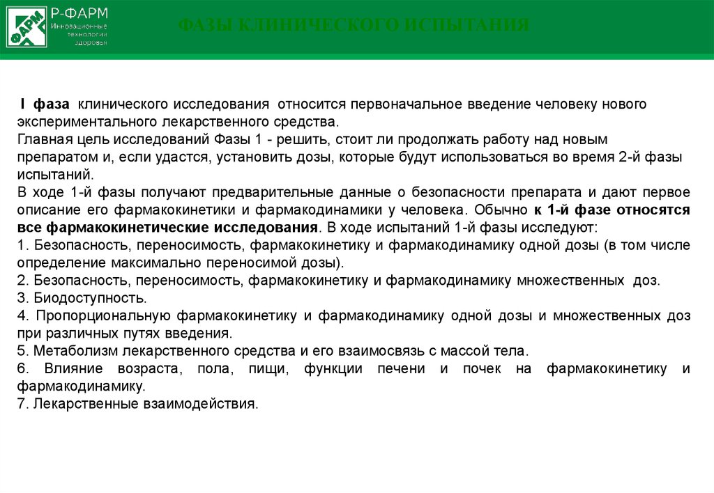 описание его фармакокинетики и фармакодинамики у человека. Обычно к 1-й фазе относятся