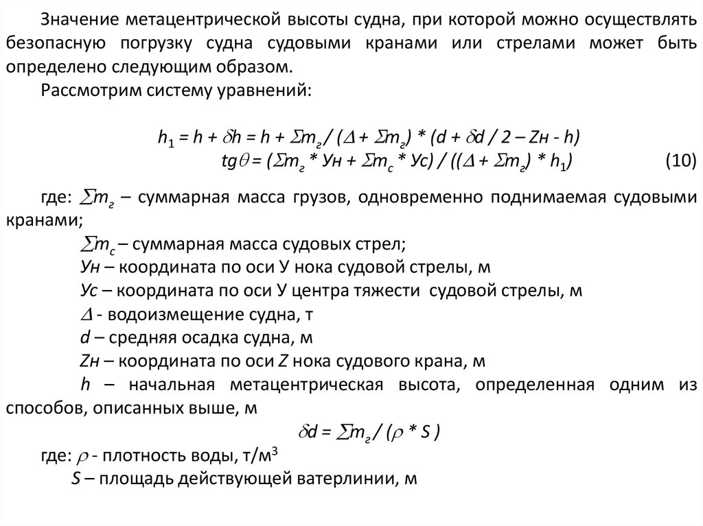 Значение метацентрической высоты судна, при которой можно осуществлятьбезопасную погрузку судна судовыми кранами или стрелами может быть