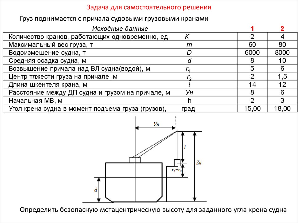 Задача для самостоятельного решенияГруз поднимается с причала судовыми грузовыми кранами
