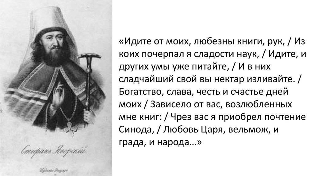 «Идите от моих, любезны книги, рук, / Изкоих почерпал я сладости наук, / Идите, и