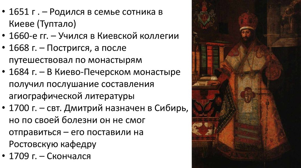 • 1700 г. – свт. Дмитрий назначен в Сибирь,