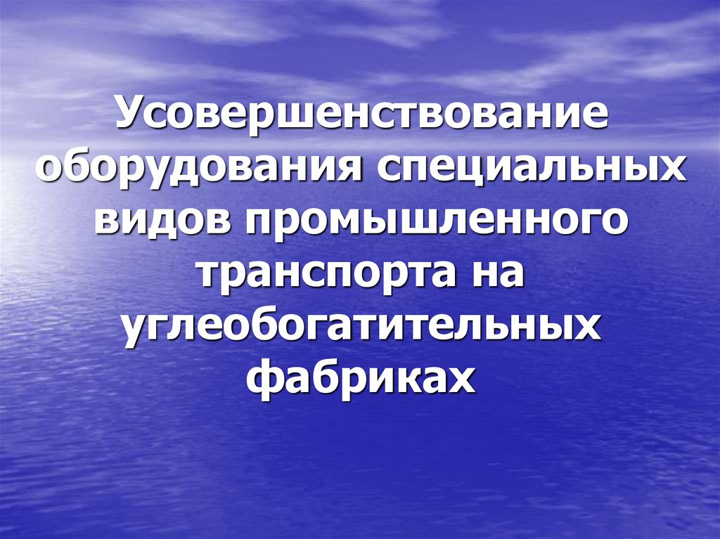 1. Усовершенствование оборудования специальных видов промышленного транспорта на углеобогатительных фабриках