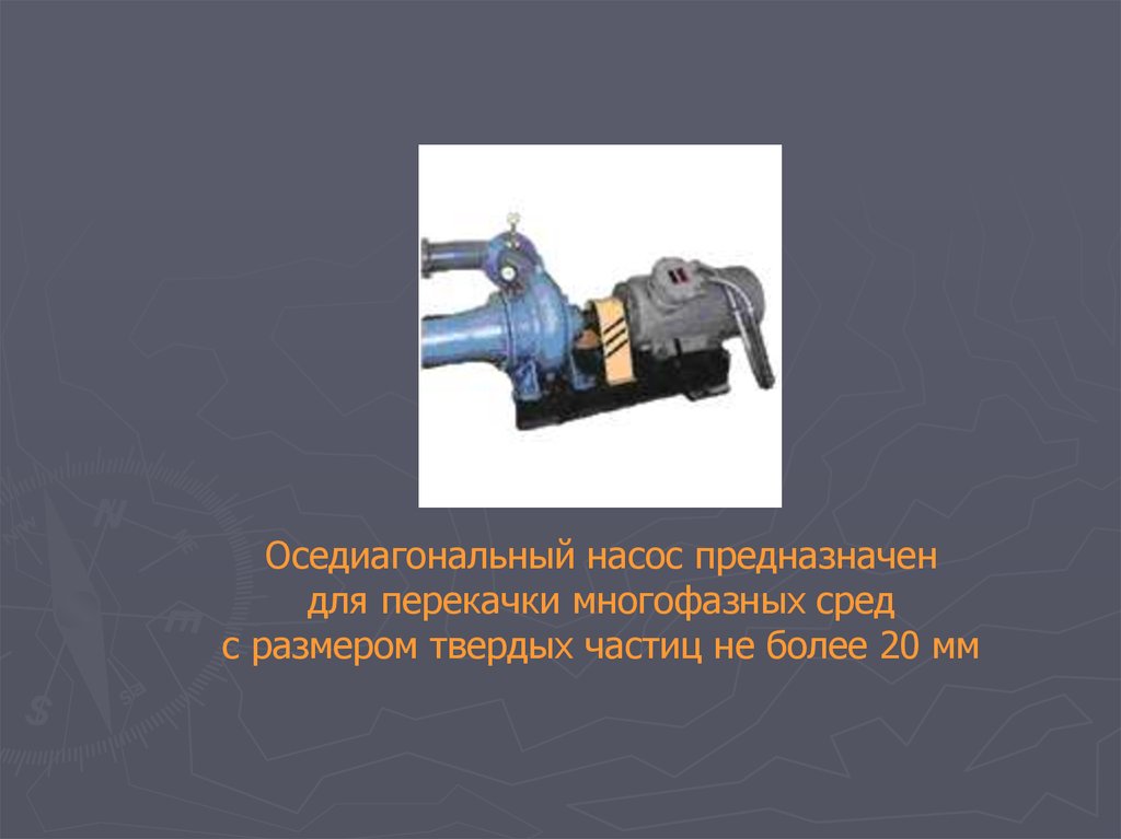 Оседиагональный насос предназначендля перекачки многофазных сред