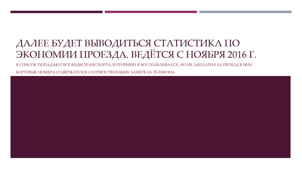 ДАЛЕЕ БУДЕТ ВЫВОДИТЬСЯ СТАТИСТИКА ПОЭКОНОМИИ ПРОЕЗДА. ВЕДЁТСЯ С НОЯБРЯ 2016 Г.