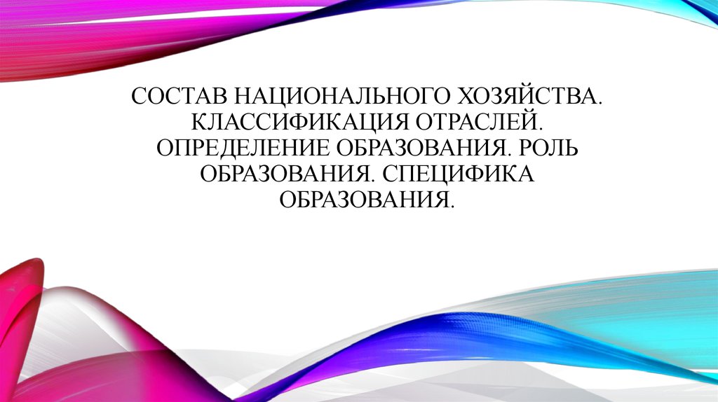 Состав национального хозяйства. Классификация отраслей. Определение образования. Роль образования. Специфика образования
