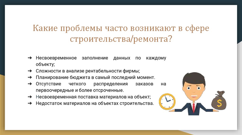 Какие проблемы часто возникают в сферестроительства/ремонта?