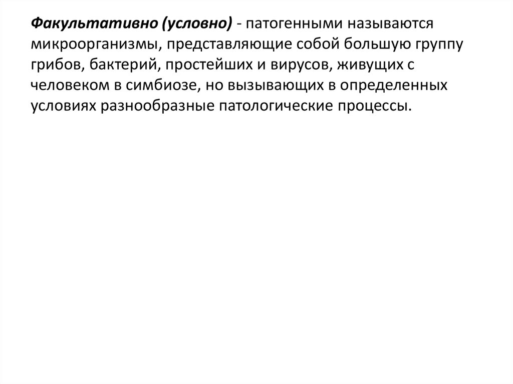 Факультативно (условно) - патогенными называютсямикроорганизмы, представляющие собой большую группу
