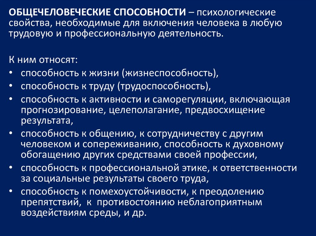ОБЩЕЧЕЛОВЕЧЕСКИЕ СПОСОБНОСТИ – психологическиесвойства, необходимые для включения человека в любую