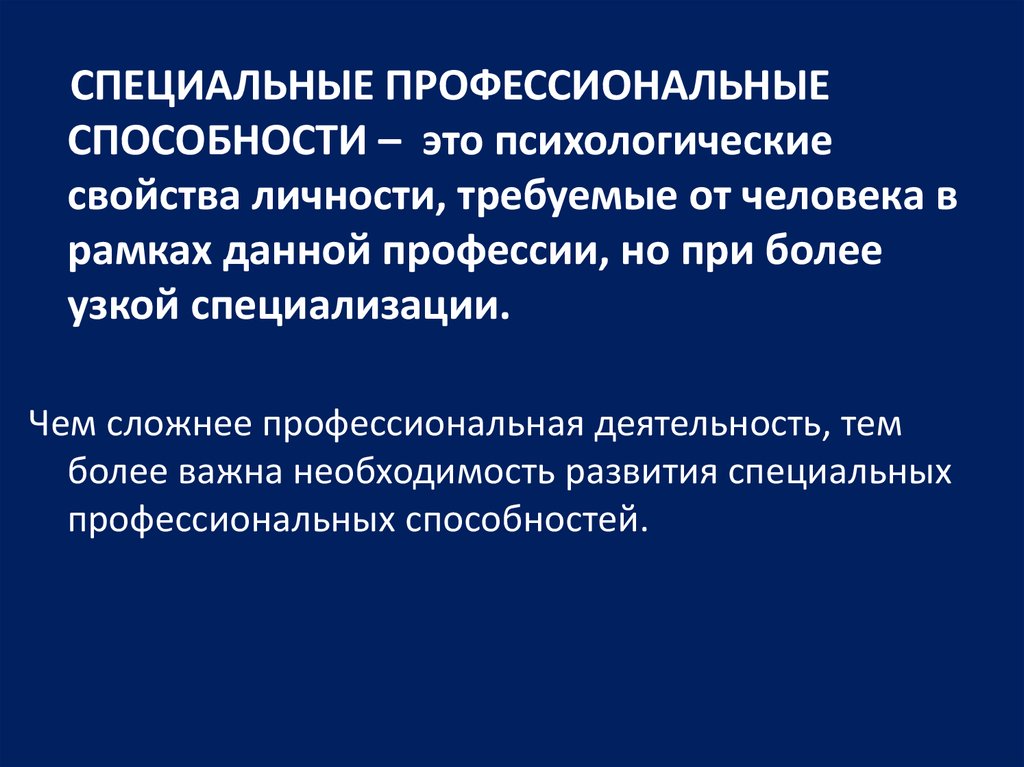 СПЕЦИАЛЬНЫЕ ПРОФЕССИОНАЛЬНЫЕСПОСОБНОСТИ – это психологические