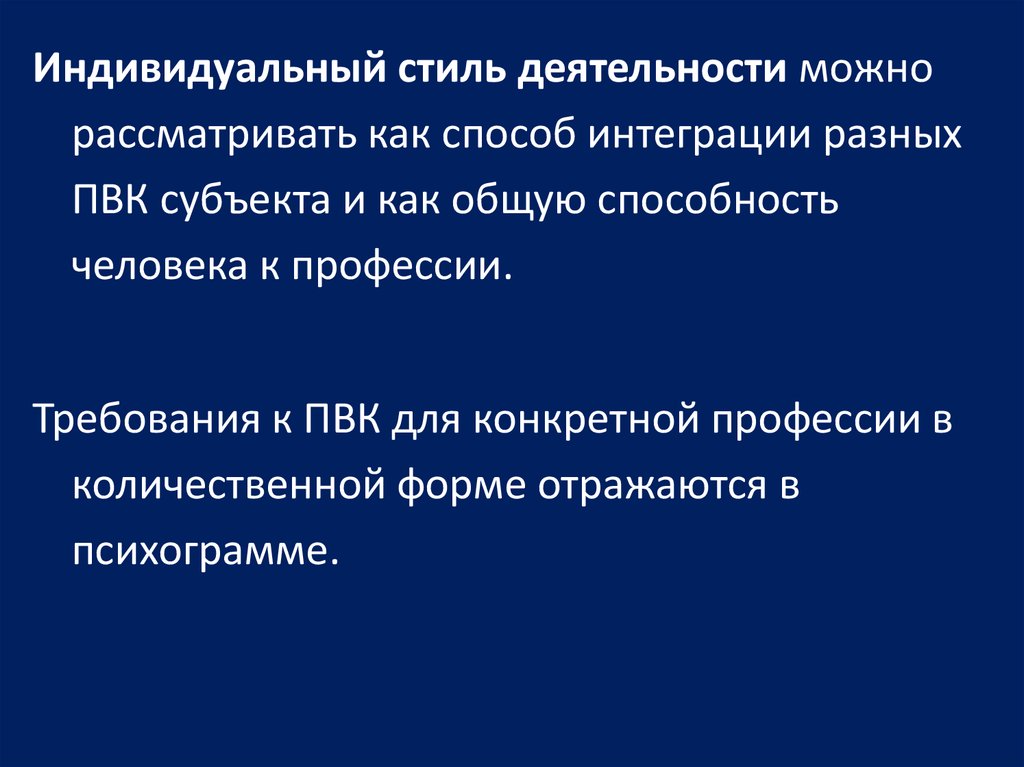 ПВК - индивидуальные качества субъекта деятельности, влияющие