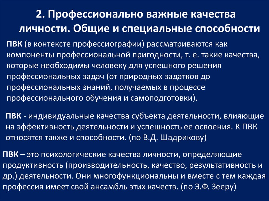 2. Профессионально важные качестваличности. Общие и специальные способности