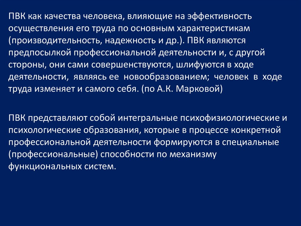 ПВК представляют собой интегральные психофизиологические и