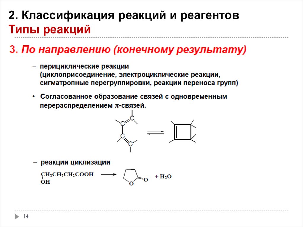 2. Классификация реакций и реагентовТипы реакций