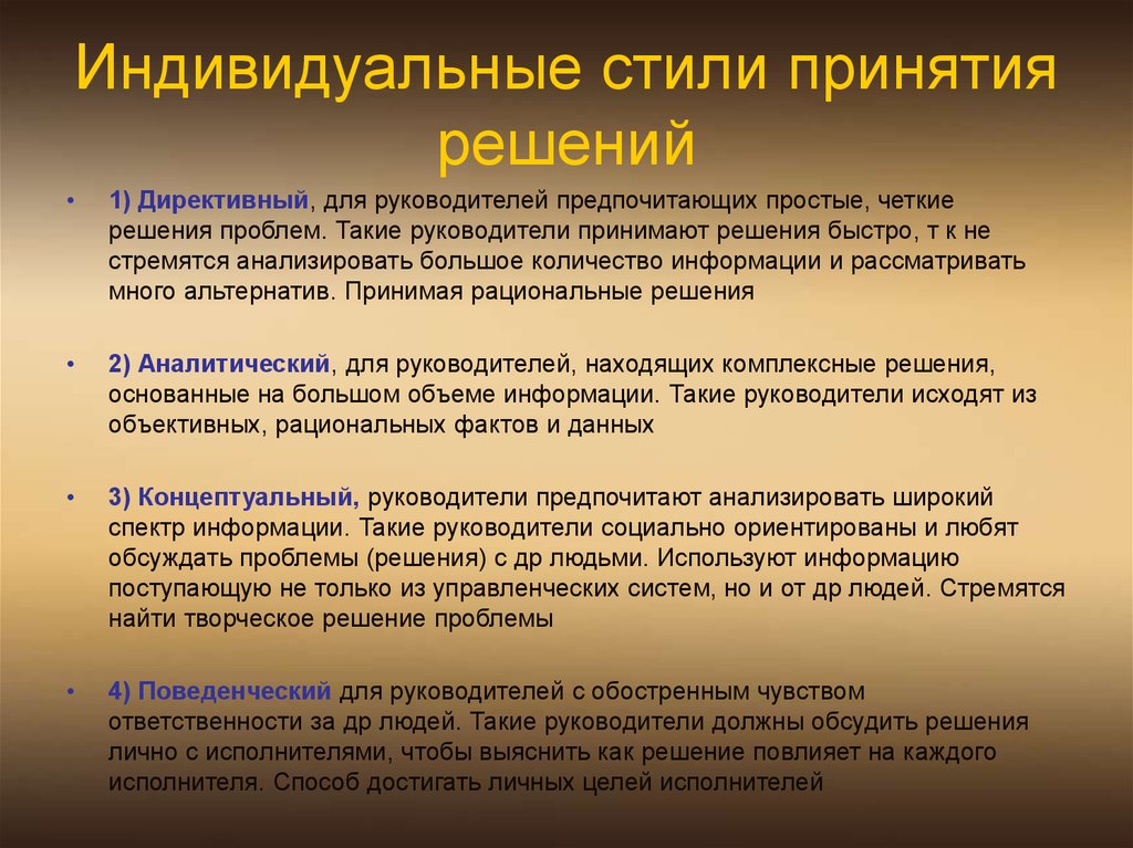 решения проблем. Такие руководители принимают решения быстро, т к не