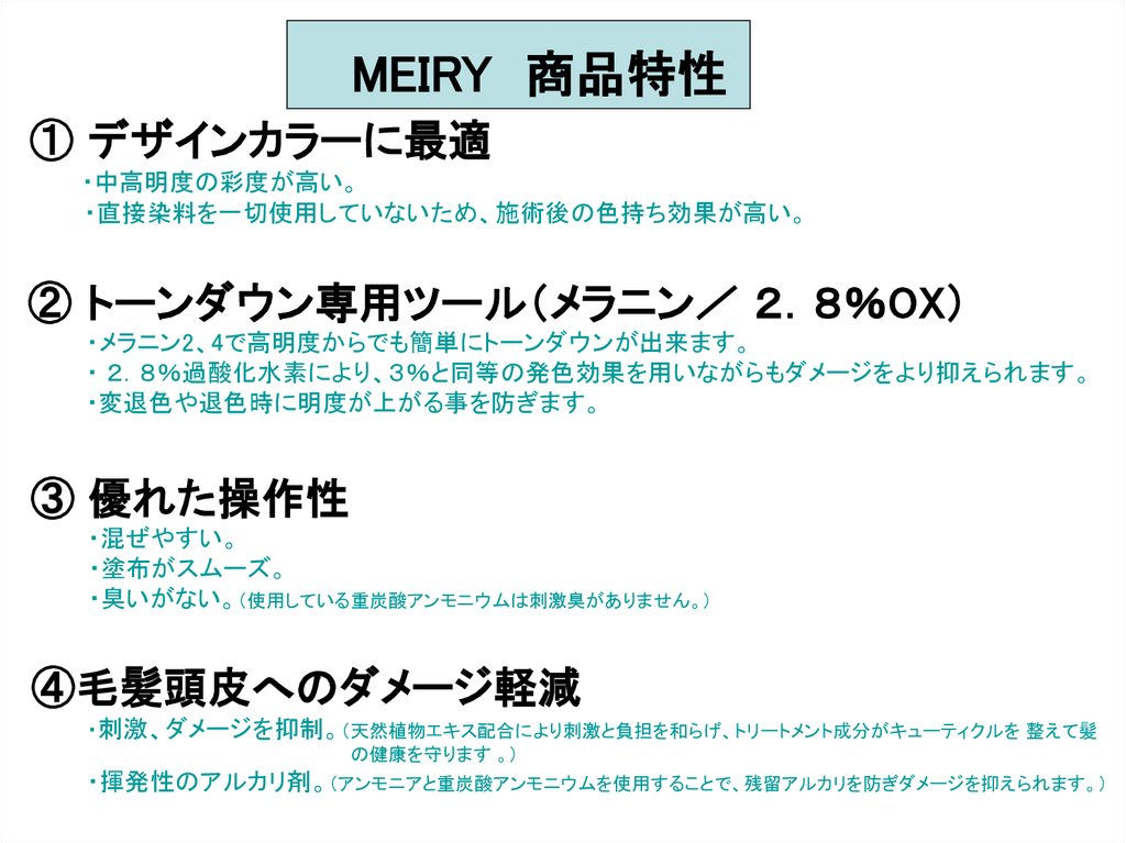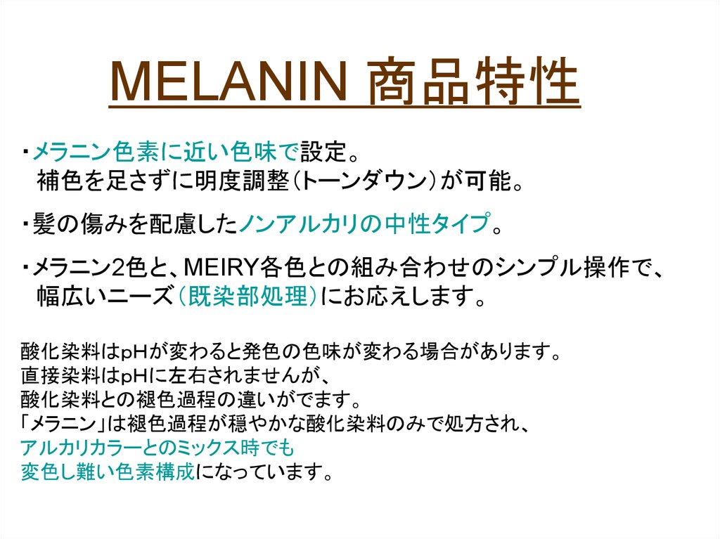・メラニン2色と、MEIRY各色との組み合わせのシンプル操作で、
