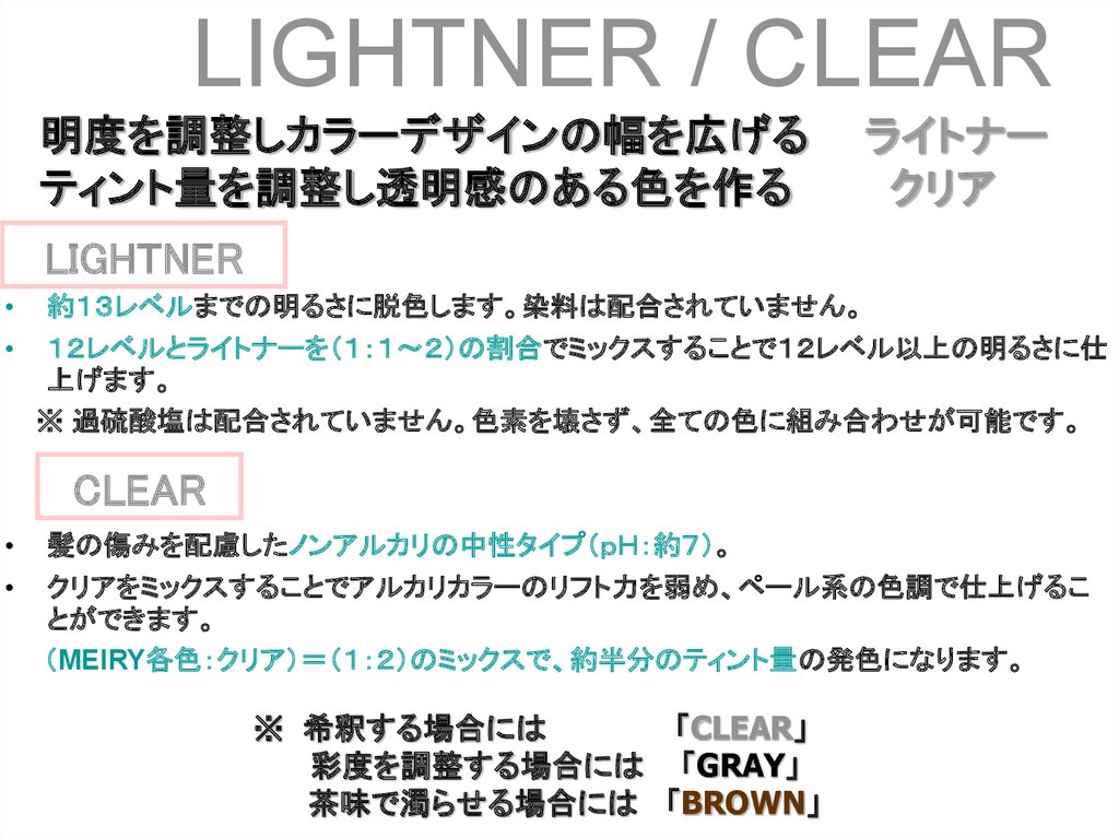 LIGHTNER / CLEAR明度を調整しカラーデザインの幅を広げる