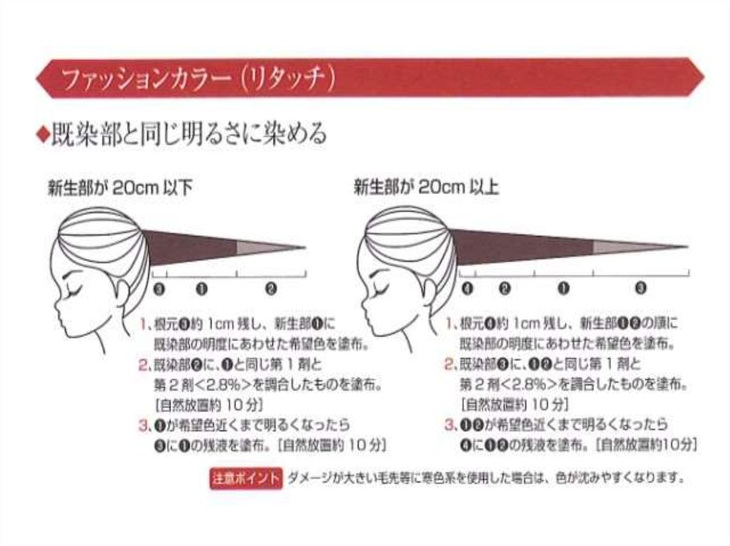 ・直接染料を一切使用していないため、施術後の色持ち効果が高い。
