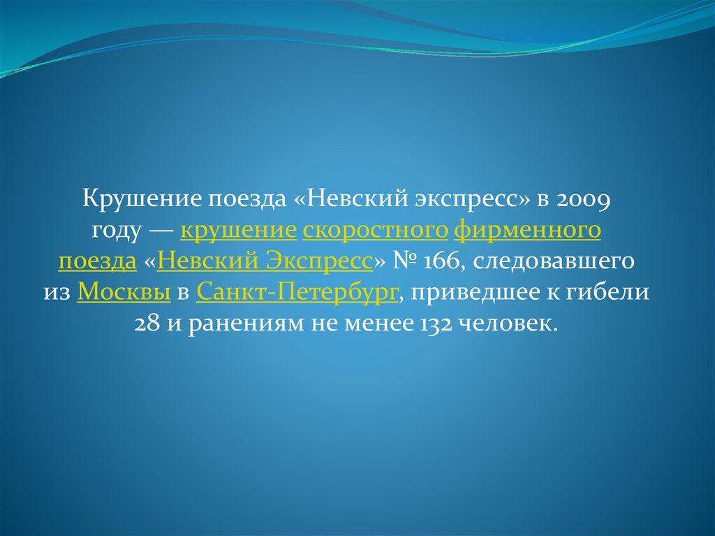 Крушение поезда «Невский экспресс» в 2009году — крушение скоростного фирменного