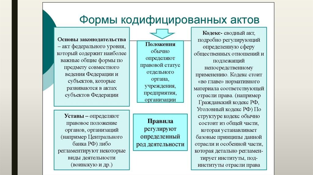 конкретизирующих эти нормы и систематизировать многочисленные нормы действующего актах.