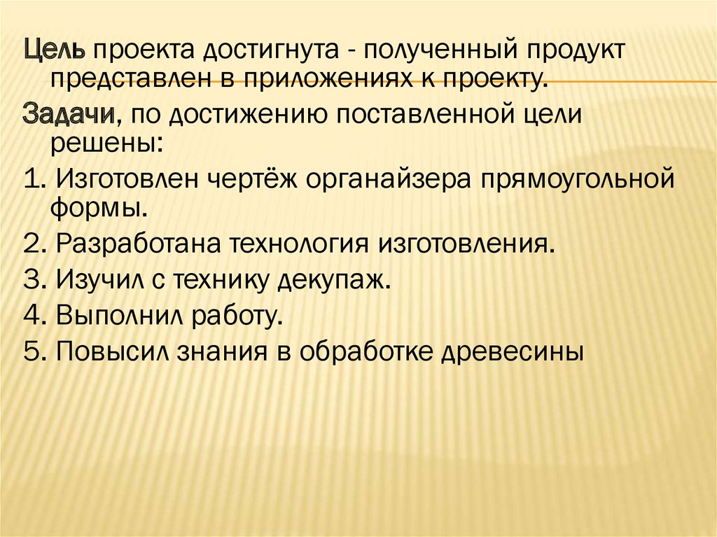 Цель проекта достигнута - полученный продуктпредставлен в приложениях к проекту.
