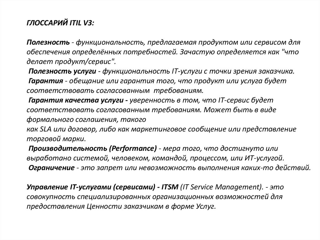 ГЛОССАРИЙ ITIL V3:Полезность - функциональность, предлагаемая продуктом или сервисом для