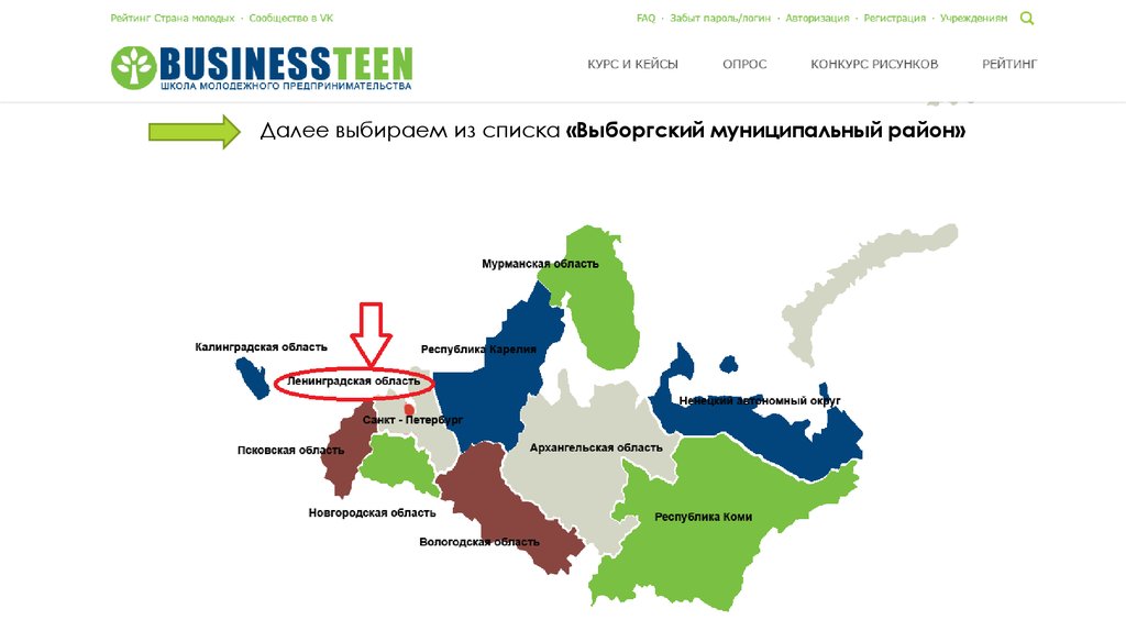 Далее выбираем из списка «Выборгский муниципальный район»6.