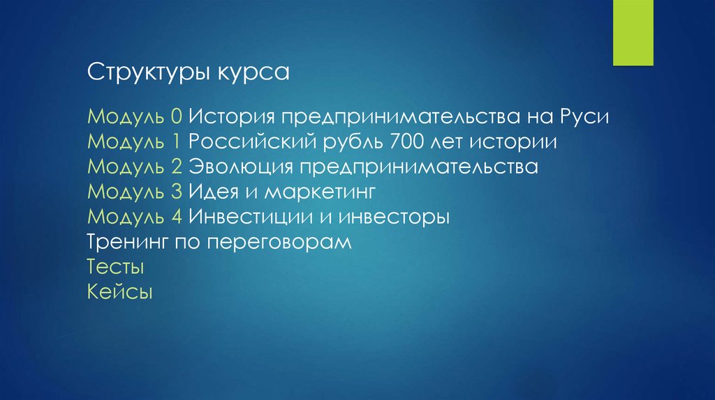 Структуры курсаМодуль 0 История предпринимательства на Руси