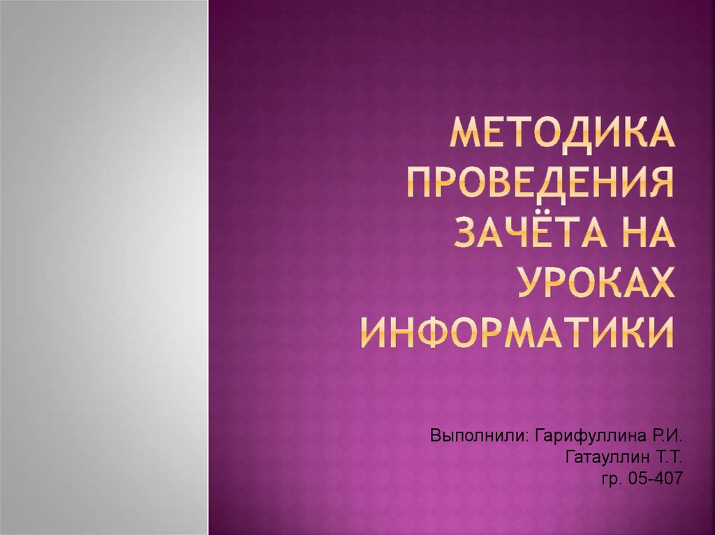 1. Методика проведения зачёта на уроках информатики
