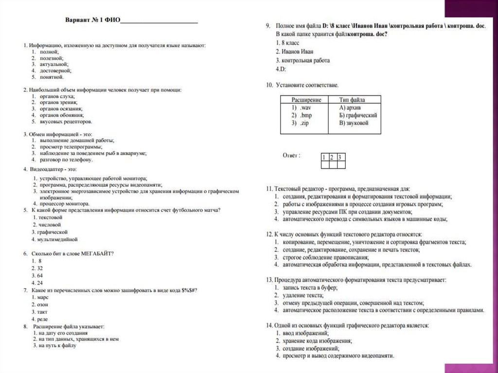 Итоговый зачет поинформатике
