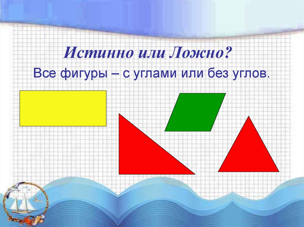 Истинно или Ложно?Все фигуры – с углами или без углов.