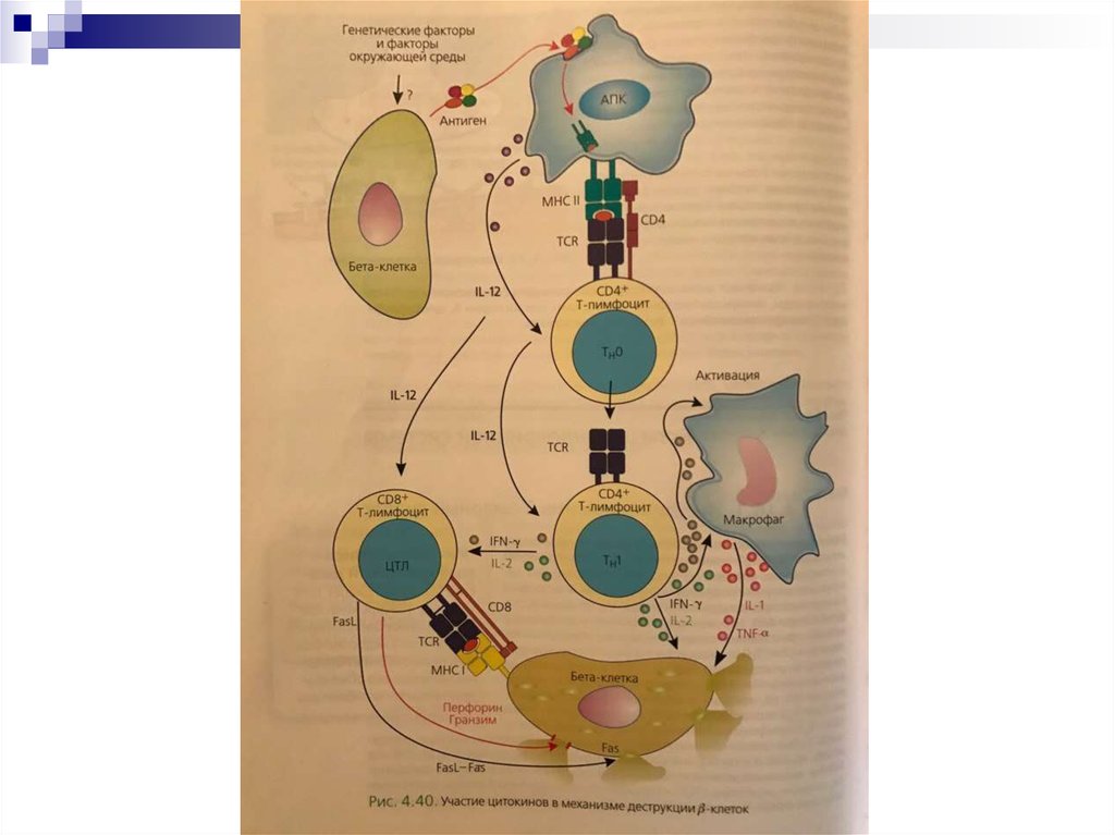 соответствующих пар Fas – FasL, что вызывает апоптоз βклеток в островках Лангерганса. Взаимодействия Fas – FasL в сочетании