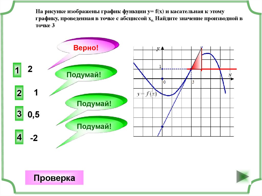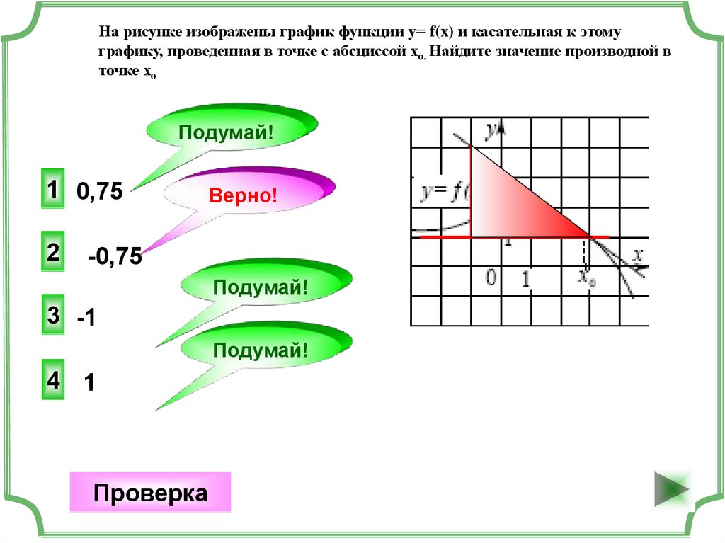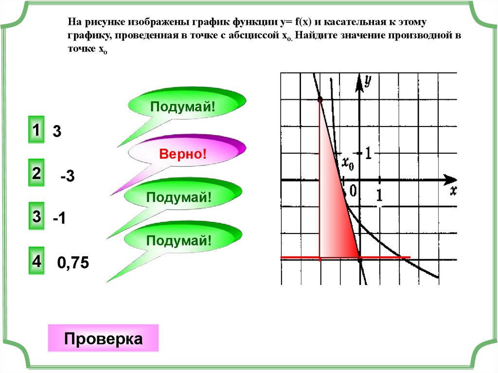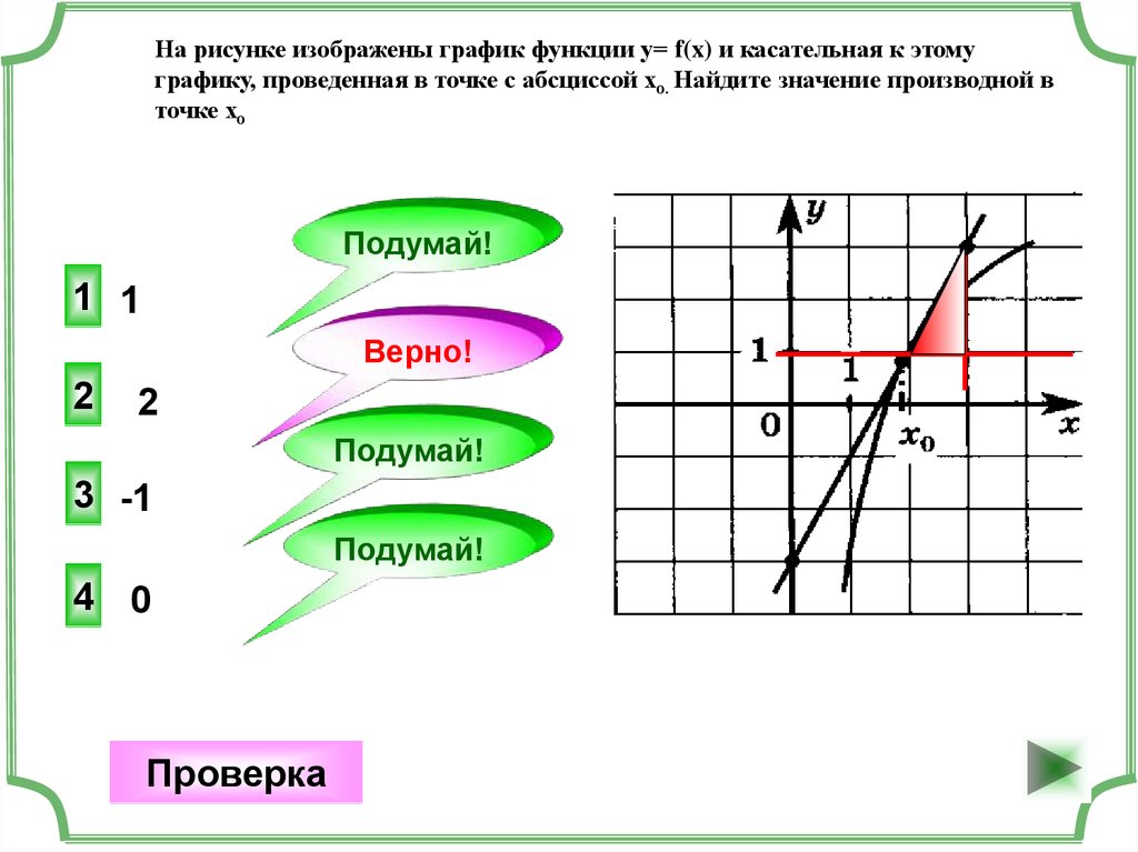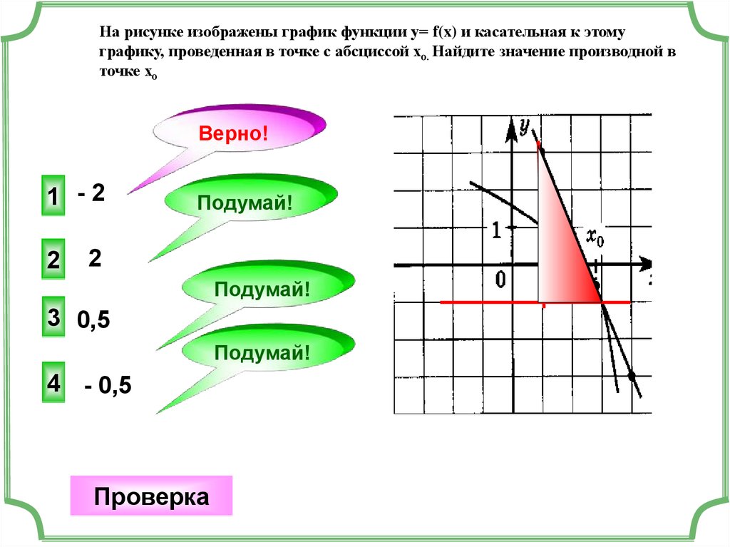 На рисунке изображены график функции у= f(x) и касательная к этомуграфику, проведенная в точке с абсциссой хо. Найдите значение производной в