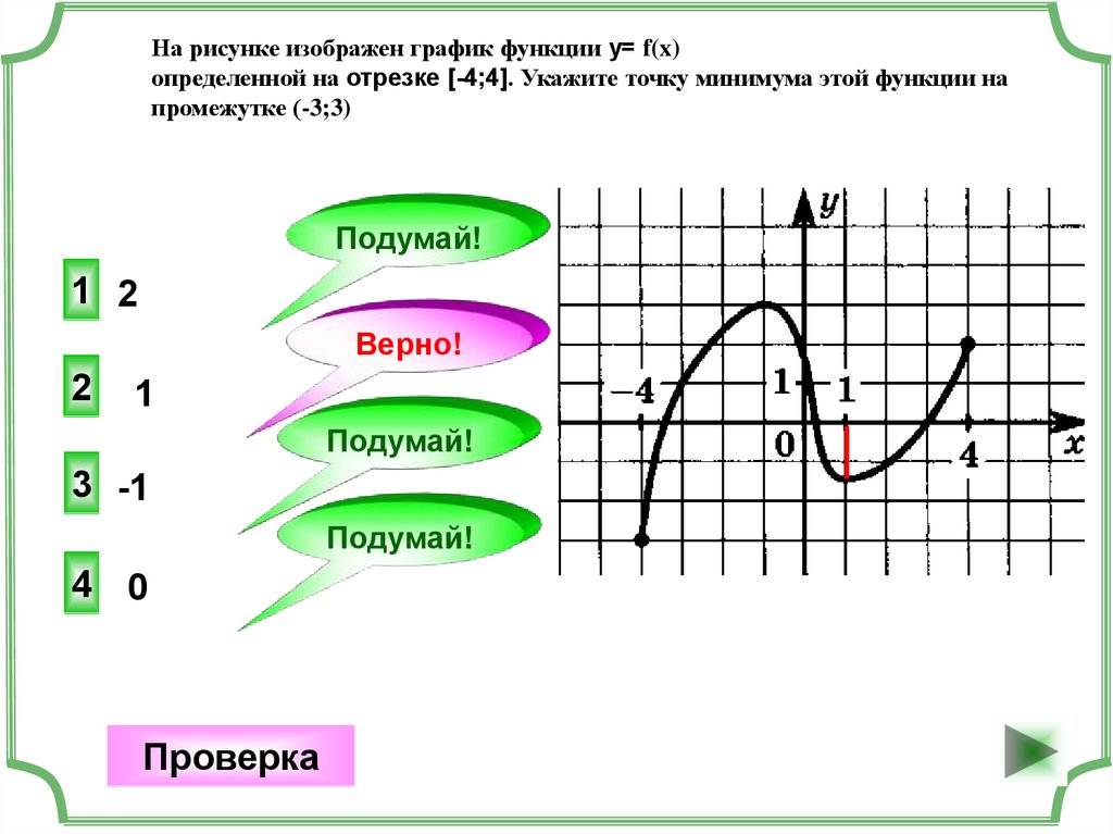 На рисунке изображен график функции у= f(x)определенной на отрезке [-4;4]. Укажите точку минимума этой функции на