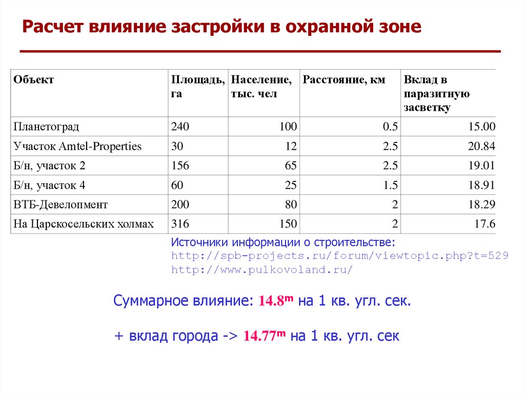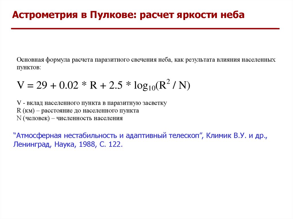 загрязнение неба над Пулковской обсерваторией примерно на 3.73