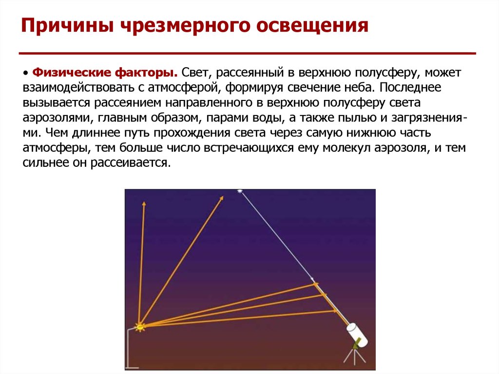 Причины чрезмерного освещения• Физические факторы. Свет, рассеянный в верхнюю полусферу, может