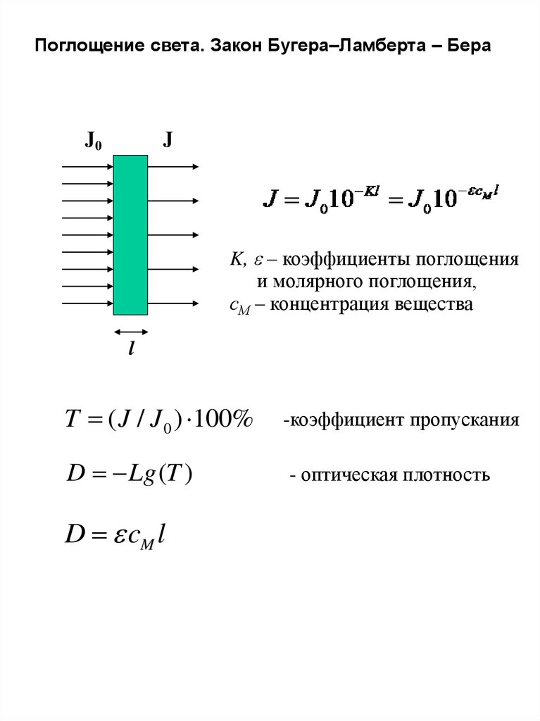 Поглощение света. Закон Бугера–Ламберта – БераJ0