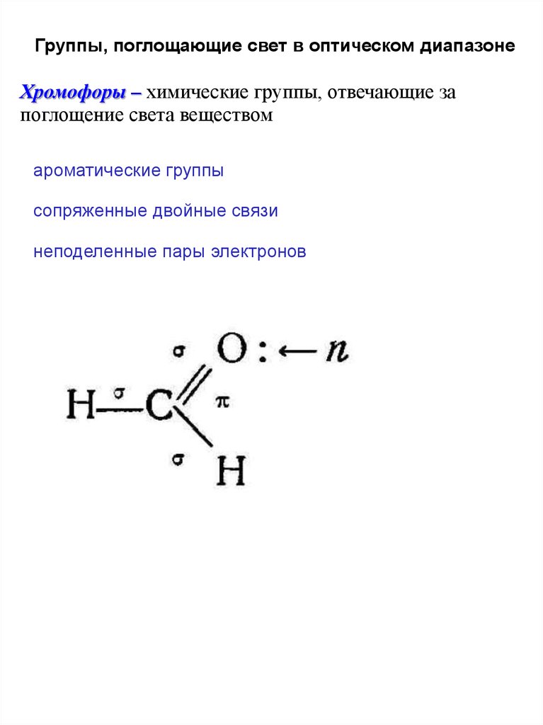 Группы, поглощающие свет в оптическом диапазонеХромофоры – химические группы, отвечающие за