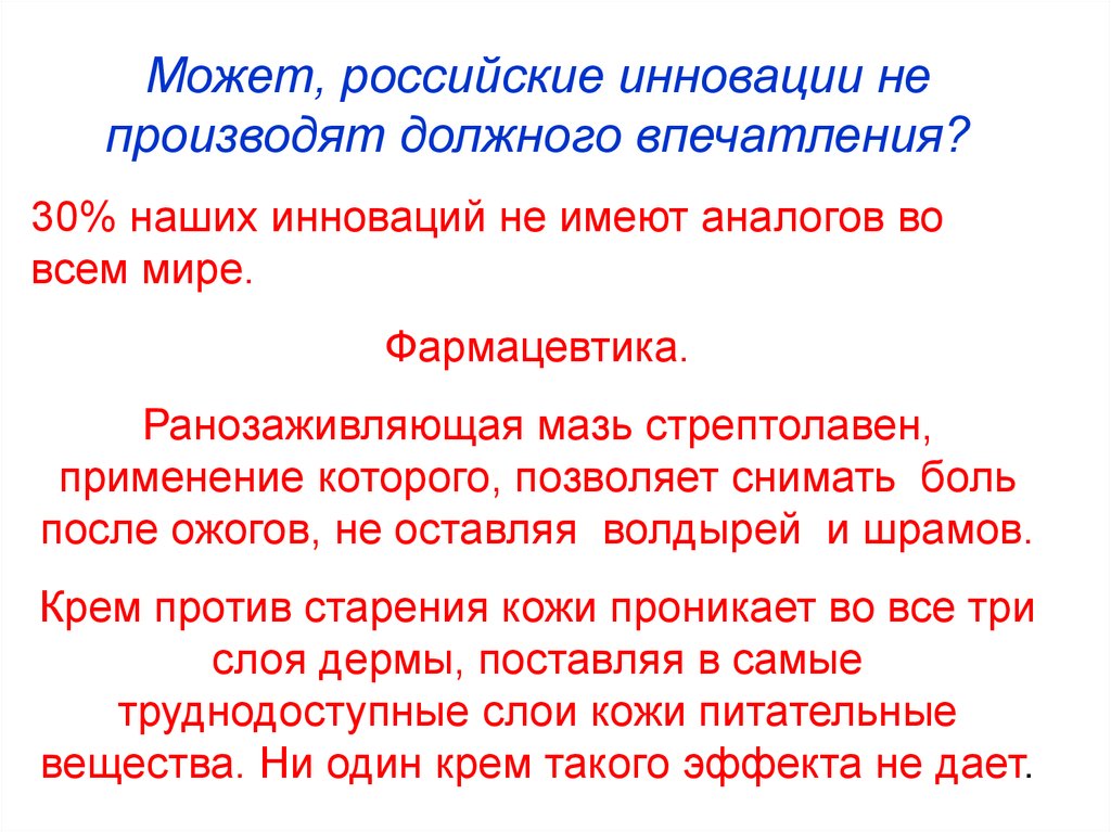 Может, российские инновации непроизводят должного впечатления?