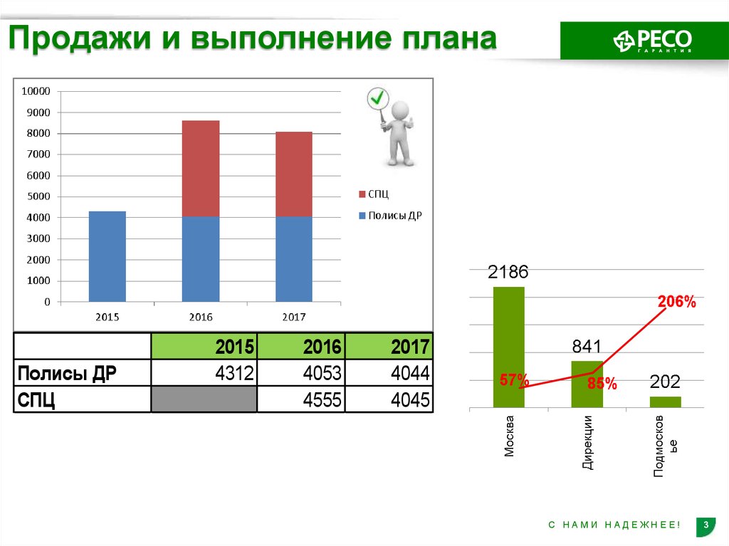 Продажи и выполнение планаПолисы ДР