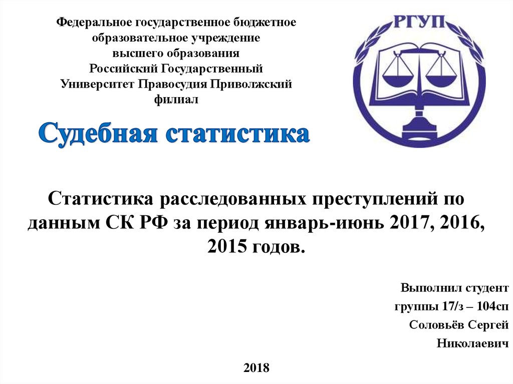1. Статистика расследованных преступлений по данным СК РФ за период январь-июнь 2017, 2016, 2015 годов.