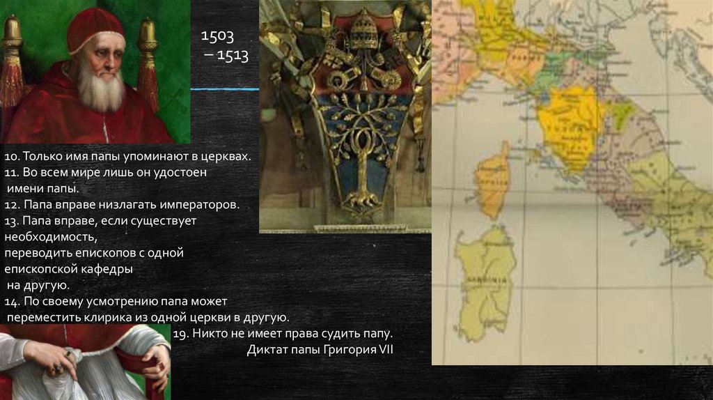 12. Папа вправе низлагать императоров.