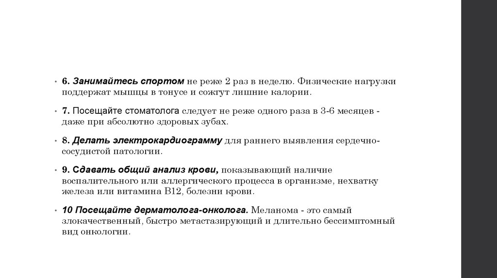 10 Посещайте дерматолога-онколога. Меланома - это самый