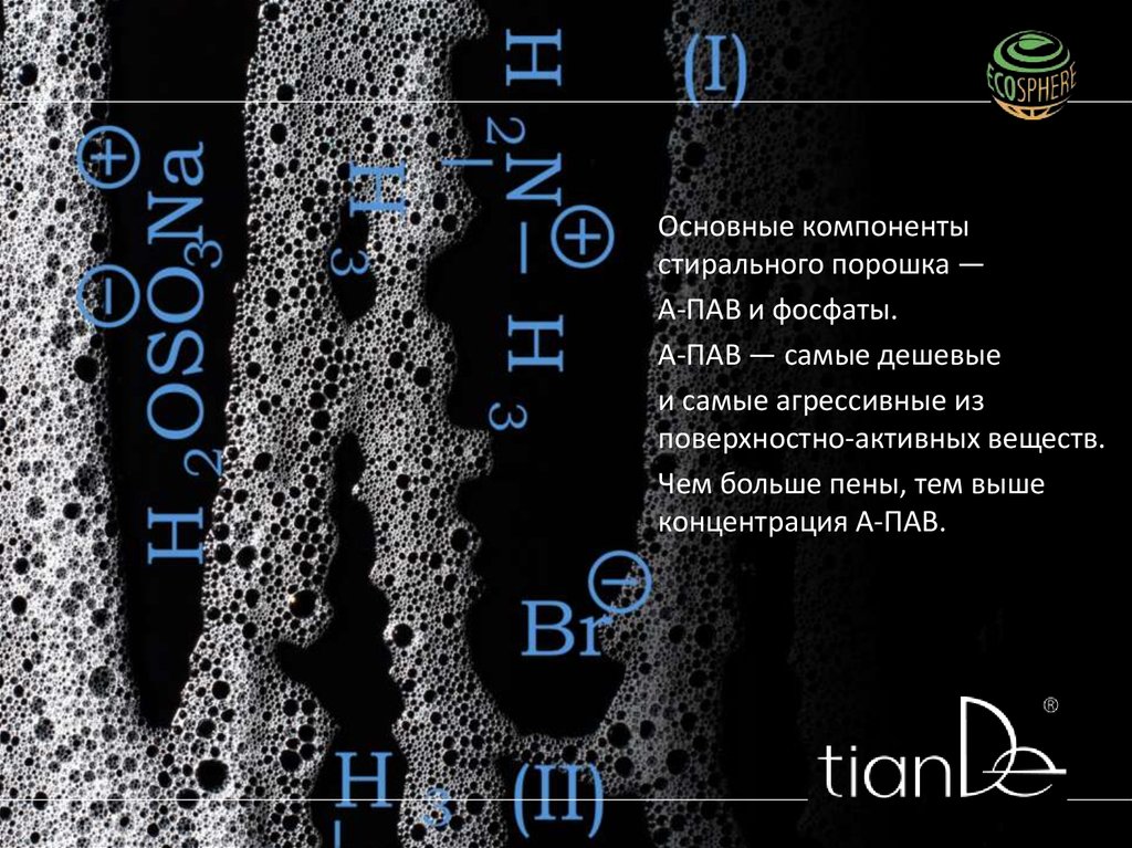 В составе экосфер нет ПАВ, фосфатов и других синтетических веществ.Они на 100% состоят из природных компонентов — гранул турмалина,