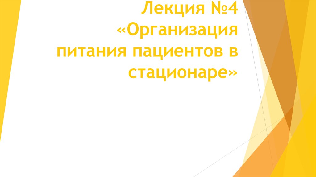 1. Лекция №4 «Организация питания пациентов в стационаре»